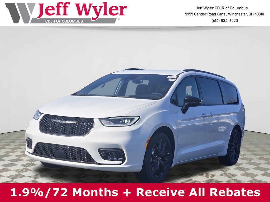 Jeff Wyler Columbus Auto Mall is very proud to offer this outstanding 2026 Chrysler Pacifica Select in Bright White Clearcoat. Well equipped with: Quick Order Package 27L, S Appearance Package (Anodized Ink Badging, Black Day Light Opening Moldings, Black Stow 'N Place Roof Rack, Caprice Leatherette with S Logo, Piano Black Interior Accents, Premium Fascia Upper/Lower Grille with Black Surround, Premium Rear Fascia Black, S Badge, and Wheels: 20" x 7.5" S-Model Aluminum Design 1), 10.1" Touchscreen Display, 17" x 7.0" Aluminum Wheels, 3.25 Axle Ratio, 3rd row seats: split-bench, 4-Wheel Disc Brakes, 4G LTE Wi-Fi Hot Spot, 6 Speakers, 8-Passenger Seating, ABS brakes, Air Conditioning, Alloy wheels, AM/FM radio: SiriusXM, Apple CarPlay, Apple CarPlay/Android Auto, Auto-dimming Rear-View mirror, Automatic temperature control, Black Seats, Brake assist, Bumpers: body-color, Caprice Leatherette Bucket Seats, Compass, Connectivity - US/Canada, Delay-off headlights, Disassociated Touchscreen Display, Driver door bin, Driver vanity mirror, Driver's Seat Mounted Armrest, Dual front impact airbags, Dual front side impact airbags, Electronic Stability Control, Emergency communication system: Chrysler Connect, For Details, Visit DriveUconnect.com, Four wheel independent suspension, Front anti-roll bar, Front Bucket Seats, Front dual zone A/C, Front fog lights, Front reading lights, Fully automatic headlights, Garage door transmitter, Google Android Auto, GPS Antenna Input, Heated door mirrors, Heated front seats, Heated steering wheel, Illuminated entry, Integrated Active Noise Cancellation, Integrated Center Stack Radio, Knee airbag, Low tire pressure warning, Memory seat, MyFlexCare Service Plan, Occupant sensing airbag, Outside temperature display, Overhead airbag, Overhead console, Panic alarm, ParkView Rear Back-Up Camera, Passenger door bin, Passenger seat mounted armrest, Passenger vanity mirror, Power door mirrors, Power driver seat, Power Liftgate, Power steering, Power windows, Radio data system, Radio: Uconnect 5 with 10.1" Display, Rain sensing wipers, Rear air conditioning, Rear reading lights, Rear window defroster, Rear window wiper, Reclining 3rd row seat, Remote keyless entry, Security system, Speed control, Split folding rear seat, Spoiler, Steering wheel mounted audio controls, Tachometer, Telescoping steering wheel, Tilt steering wheel, Touring Suspension, Traction control, Trip computer, Turn signal indicator mirrors, USB Host Flip, Variably intermittent wipers, and VoltmeteR. 19/28 City/Highway MPGWyler Family First Package Includes: NanoCure Appearance Protection: Exterior & Interior Chemical Sealant Applied to Protect Against Environmental Hazards (7 Year Warranty Coverage). Pulse- Rear End Collision Avoidance System Theft Deterrent Strategy gives you 5 Years of Coverage against vehicle theft, Offering up to a $5,000 benefit. Price does not include Tax, Title, License and Documentary Fee$1000 - 2026 Great Lakes BC Select Inventory Bonus Cash. Exp. 04/30/2026 $3500 - 2026 National Retail Bonus Cash . Exp. 04/30/2026 $500 - 2026 National 2026 Military Bonus Cash . Exp. 01/04/2027