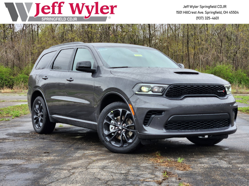 Jeff Wyler Springfield Auto Mall is honored to offer this good-looking 2025 Dodge Durango R/T in Vapor Gray. Well equipped with: Blacktop Package (Black Roof Rails, Gloss Black Badges, Gloss Black Exterior Mirrors, Integrated Roof Rail Crossbars, Satin Black Dodge Tail Lamp Badge, and Wheels: 20" x 8.0" Black Noise Aluminum), Quick Order Package 22S R/T, 3.09 Rear Axle Ratio, 3rd row seats: split-bench, 4-Wheel Disc Brakes, 9 Speakers, ABS brakes, Air Conditioning, Alloy wheels, AM/FM radio: SiriusXM w/360L, Apple CarPlay/Android Auto, Auto-dimming Rear-View mirror, Auto-leveling suspension, Automatic temperature control, Brake assist, Bumpers: body-color, Cloth Bucket Seats w/Shift Insert, Compass, Delay-off headlights, Driver door bin, Driver vanity mirror, Dual front impact airbags, Dual front side impact airbags, Electronic Stability Control, Emergency communication system: Dodge Connect, Exterior Mirrors w/Heating Element, Four wheel independent suspension, Front anti-roll bar, Front Bucket Seats, Front Center Armrest w/Storage, Front dual zone A/C, Front reading lights, Fully automatic headlights, Garage door transmitter, Heated door mirrors, Heated front seats, Heated steering wheel, Illuminated entry, Knee airbag, Leather steering wheel, Low tire pressure warning, Navigation System, Occupant sensing airbag, Outside temperature display, Overhead airbag, Overhead console, Panic alarm, ParkView Rear Back-Up Camera, Passenger door bin, Passenger vanity mirror, Power door mirrors, Power driver seat, Power Liftgate, Power steering, Power windows, Radio data system, Radio: Uconnect 5 Nav w/10.1" Display, Rain sensing wipers, Rear air conditioning, Rear anti-roll bar, Rear Load Leveling Suspension, Rear reading lights, Rear seat center armrest, Rear window defroster, Rear window wiper, Red Accent Stitching, Remote keyless entry, Security system, Speed control, Speed-sensing steering, Speed-Sensitive Wipers, Split folding rear seat, Spoiler, Sport steering wheel, Steering wheel mounted audio controls, Tachometer, Telescoping steering wheel, Tilt steering wheel, Traction control, Trip computer, Variably intermittent wipers, Voltmeter, and Wheels: 20" x 8.0" Fine Silver. 14/22 City/Highway MPGWyler Family First Package Includes: NanoCure Appearance Protection: Exterior & Interior Chemical Sealant Applied to Protect Against Environmental Hazards (7 Year Warranty Coverage). Pulse- Rear end Collision Avoidance System Theft Deterrent Strategy gives you 5 Years of Coverage against vehicle Theft, Offering up to a $5,000 benefit. Available Incentives: $2000 - 2025 National Overaged Select Inventory Bonus Cash. Exp. 11/03/2025 $2250 - 2025 National Retail Bonus Cash . Exp. 11/03/2025