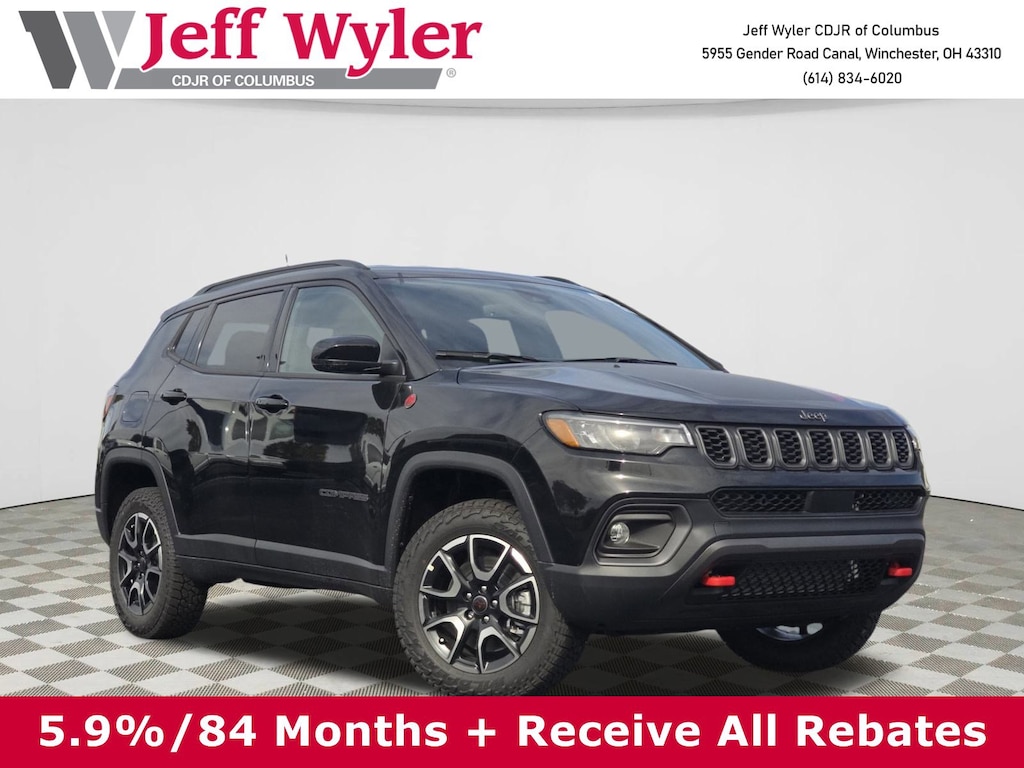Adventure Awaits in This Brand-New 2026 Jeep Compass Trailhawk!Experience ultimate off-road capability with part-time 4WD and Trailhawk's rugged design in stunning Diamond Black Crystal Pearlcoat. This SUV combines adventure-ready performance with everyday comfort and cutting-edge technology. Safety First: Advanced safety suite includes Full Speed Forward Collision Warning, Pedestrian Emergency Braking, Blind Spot Detection, and Active Lane Management for confident driving anywhere. Premium Features: Heated leather-trimmed seats, heated steering wheel, 10.1" touchscreen with Bluetooth connectivity, power liftgate, and adaptive cruise control with stop & go functionality. Exceptional Value: Take advantage of $1,000 in National Bonus Cash incentives, plus our exclusive Wyler Family First Package including 7-year NanoCure protection and 5-year theft coverage up to $5,000. Brand New Confidence: Factory warranty coverage and certified Jeep quality ensure years of reliable adventure. Why Choose Jeff Wyler Columbus: Over 45 years of trusted service, competitive pricing, and Ohio's highest-rated customer satisfaction. Our dedicated team provides personalized service that competitors can't match.Ready to explore? This Trailhawk is equipped for any journey while keeping you connected and comfortable. Price does not include Tax, Title, License and Documentary Fee$1000 - 2026 National Retail Bonus Cash . Exp. 04/30/2026 $1000 - 2026 National Stellantis Loyalty Bonus Cash . Exp. 04/30/2026 $500 - 2026 National 2026 Military Bonus Cash . Exp. 01/04/2027 $750 - 2026 Great Lakes BC Bonus Cash . Exp. 04/30/2026