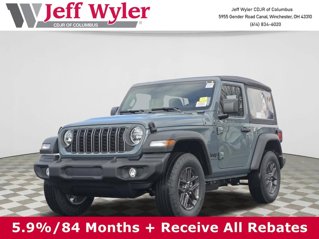 Jeff Wyler Columbus Auto Mall is pleased to offer this fantastic-looking and fun 2026 Jeep Wrangler Sport in Anvil Clear Coat. Well equipped with: Quick Order Package 23B Sport, 12.3" Touchscreen Display, 3.45 Overall Top Gear Ratio, 4-Wheel Disc Brakes, 4G LTE Wi-Fi Hot Spot, 8 Speakers, ABS brakes, Air Conditioning, AM/FM radio: SiriusXM with 360L, Apple CarPlay, Apple CarPlay/Android Auto, Aux Battery, Brake assist, Cloth Low-Back Bucket Seats, Compass, Connectivity - US/Canada, Delay-off headlights, Driver door bin, Driver vanity mirror, Dual front impact airbags, Dual front side impact airbags, Electronic Stability Control, For More Info, Call 800-643-2112, Front anti-roll bar, Front Bucket Seats, Front Center Armrest w/Storage, Front fog lights, Front reading lights, Google Android Auto, Illuminated entry, Integrated Center Stack Radio, Integrated roll-over protection, Jeep Trail Rated Kit, Low tire pressure warning, MOPAR All-Weather Floor Mats, Myflexcare Service Plan, Non-Lock Fuel Cap Without Discriminator, Normal Duty Suspension, Occupant sensing airbag, Outside temperature display, Overhead airbag, Panic alarm, ParkView Rear Back-Up Camera, Passenger door bin, Passenger vanity mirror, Power steering, Power windows, Radio data system, Radio: Uconnect 5 with 12.3" Display, Rear anti-roll bar, Rear reading lights, Remote keyless entry, SiriusXM Radio Service, SiriusXM with 360L, Speed control, Steering wheel mounted audio controls, Stop-Start Dual Battery System, Tachometer, Telescoping steering wheel, Tilt steering wheel, Traction control, Trip computer, Variably intermittent wipers, Wheels: 17" x 7.5" Black Steel Styled, and Wheels: 17" x 7.5" Gray.Wyler Family First Package Includes: NanoCure Appearance Protection: Exterior & Interior Chemical Sealant Applied to Protect Against Environmental Hazards (7 Year Warranty Coverage). Pulse- Rear End Collision Avoidance System Theft Deterrent Strategy gives you 5 Years of Coverage against vehicle theft, Offering up to a $5,000 benefit. Price does not include Tax, Title, License and Documentary Fee$1000 - 2026 National Stellantis Loyalty Bonus Cash . Exp. 04/30/2026 $500 - 2026 National 2026 Military Bonus Cash . Exp. 01/04/2027