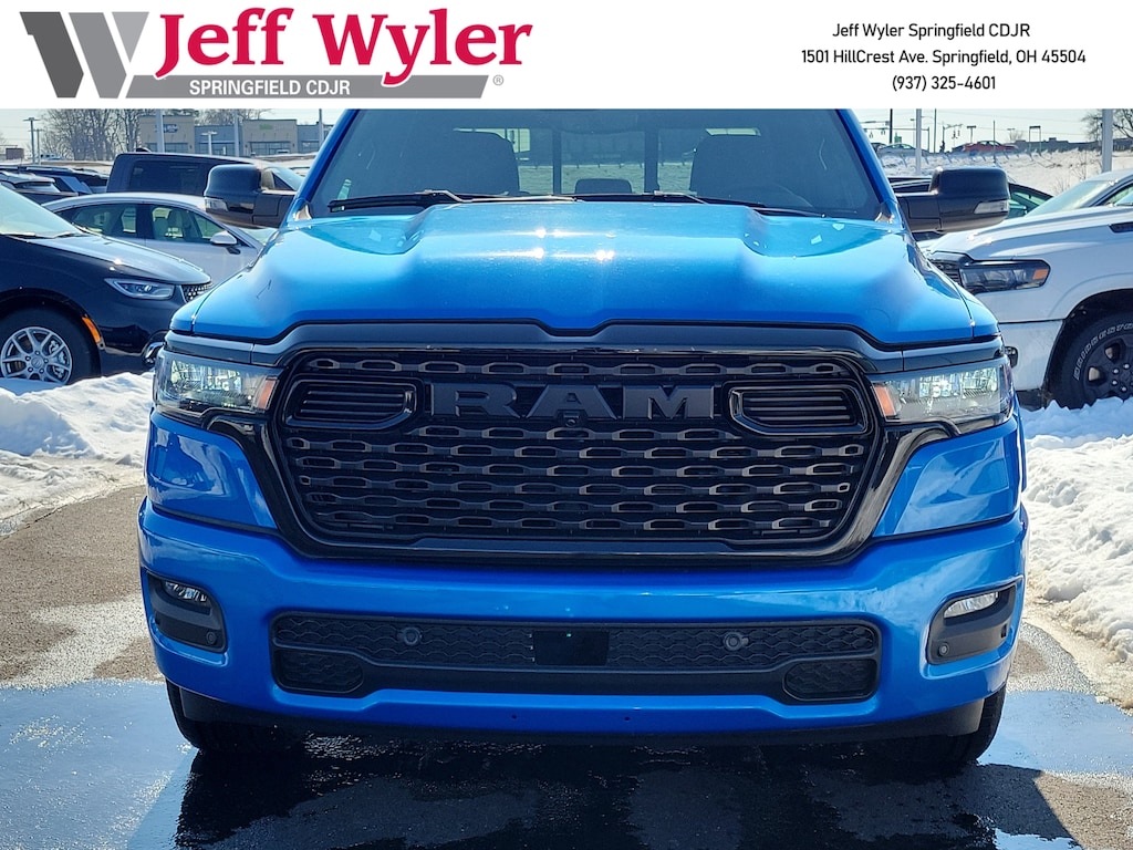 Priced below KBB Fair Purchase Price! Jeff Wyler Springfield Auto Mall is delighted to offer this stunning 2025 Ram 1500 Big Horn/Lone Star in Hydro Blue Pearlcoat. Well equipped with: Big Horn Level 2 Equipment Group (115V Auxiliary Power Outlet, 115V Auxiliary Rear Power Outlet, 12" Touchscreen Display, 2nd Row In Floor Storage Bins, 400W Inverter, 4G LTE Wi-Fi Hot Spot, 9 Amplified Speakers w/Subwoofer, Air Conditioning ATC w/Dual Zone Control, Apple CarPlay, Auto Power-Folding Mirrors, Auto-Dimming Exterior Driver Mirror, Auto-Dimming Rear-View Mirror, Black Exterior Mirrors, Black Premium Power Mirrors, Cluster 7.0" TFT Color Display, Configurable Drive Mode, Connected Travel & Traffic Services, Connectivity - US/Canada, Convex Wide-Angle Exterior Mirror Insert, Exterior Mirrors Courtesy Lamps, Exterior Mirrors w/Heating Element, Exterior Mirrors w/Supplemental Signals, Glove Box Lamp, Google Android Auto, GPS Antenna Input, GPS Navigation, HD Radio, Heated Front Seats, Heated Steering Wheel, Integrated Voice Command w/Bluetooth, Leather Wrapped Steering Wheel, LED Dome Lamp w/On/Off Switch, LED Footwell Lighting, Media Hub w/2 Charge Only USBs, Overhead LED Lamps, Power 2-Way Driver Lumbar Adjust, Power Adjust 8-Way Driver Seat, Power Adjustable Pedals, Premium Overhead Console, Radio: Uconnect 5 Nav w/12.0" Display, Rear Power Sliding Window, Rear Window Defroster, Remote Tailgate Release, Security Alarm, SiriusXM w/360L, Steering Wheel Mounted Audio Controls, Sun Visors w/Illuminated Vanity Mirrors, Universal Garage Door Opener, and USB Host Flip), Night Edition (3 Rear Seat Head Restraints, 4 Way Front Headrests, Accent Color Door Handles, Accent Color Premium Power Mirrors, Accent Color Tailgate Handle, Anti-Spin Differential Rear Axle, Black Exterior Truck Badging, Black Headlamp Bezels, Black Interior Accents, Black Painted Exterior Mirrors Caps, Black Tail Lamp Bezels, Body Color Front Bumper, Body Color Rear Bumper w/Step Pads, Bucket Seats, Deluxe Cloth Bucket Seats, Front Seat Back Map Pockets, Full Length Floor Console, Grille Black Surround Black Mesh, Manual Adjust 4-Way Front Passenger Seat, RAM Grille Badge - Black, Rear 60/40 Folding Seat, Rear Center Armrest, and Wheels: 20" x 9.0" Aluminum Painted Clad), Quick Order Package 23Z Big Horn (Big Horn Badge), 4-Wheel Disc Brakes, 6 Speakers, ABS brakes, Air Conditioning, Alloy wheels, AM/FM radio, Apple CarPlay/Android Auto, Auto High-beam Headlights, Brake assist, Bumpers: chrome, Cloth Bench Seat, Compass, Delay-off headlights, Driver door bin, Dual front impact airbags, Dual front side impact airbags, Electronic Stability Control, Front anti-roll bar, Front Center Armrest w/Storage, Front fog lights, Front License Plate Bracket, Front reading lights, Front wheel independent suspension, Fully automatic headlights, Heated door mirrors, Illuminated entry, Low tire pressure warning, Manual Folding Exterior Mirrors, Manufacturer's Statement of Origin, Mopar Black Tubular Side Steps, MOPAR Front & Rear Rubber Floor Mats, Occupant sensing airbag, Outside temperature display, Overhead airbag, Overhead console, Panic alarm, ParkView Rear Back-Up Camera, Passenger door bin, Passenger vanity mirror, Power door mirrors, Power steering, Power windows, Radio data system, Radio: Uconnect 5 W w/8.4" Display, RAM Grille Badge - Chrome, Rear anti-roll bar, Rear seat center armrest, Rear step bumper, Remote keyless entry, Speed control, Split folding rear seat, Supplier Part Tracking (J-1), Tachometer, Telescoping steering wheel, Tilt steering wheel, Traction control, Trailer Brake Control, Trip computer, Variably intermittent wipers, Voltmeter, and Wheels: 18" x 8" Cast-Aluminum Painted. 19/24 City/Highway MPGWyler Family First Package Includes: NanoCure Appear Available Incentives: $1000 - Driveability / Automobility Program. Exp. 12/31/2026 $500 - 2025 National 2025 First Responder Bonus Cash. Exp. 01/04/2027 10% Msrp - 2025 National 10% Below MSRP . Exp. 03/02/2026
