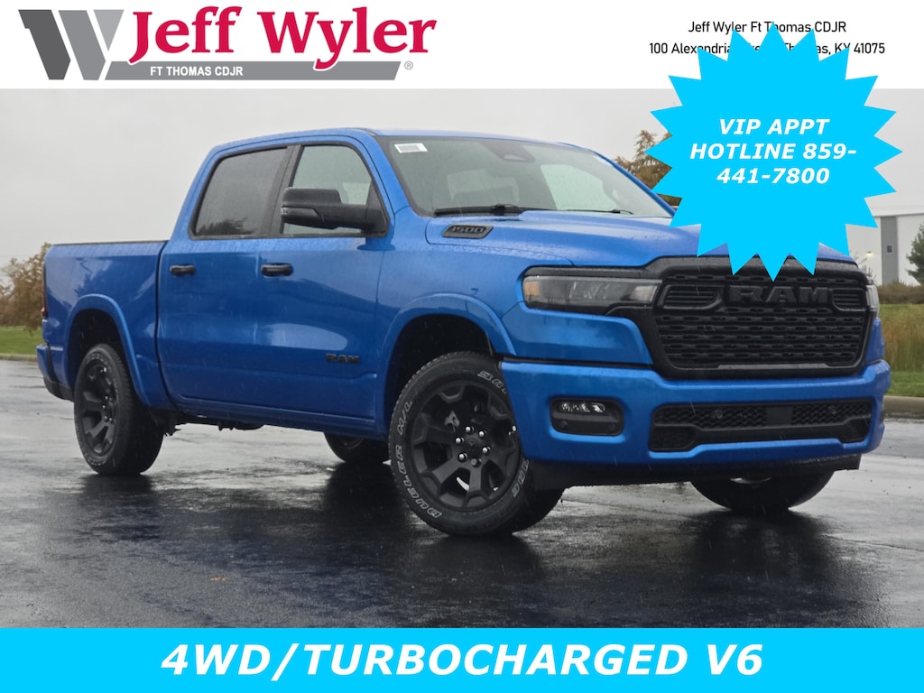 QUICK ORDER PACKAGE 21Z BIG HORN -inc: Engine: 3.0L I6 Hurricane SO Twin Turbo ESS, Transmission: 8-Speed Automatic (8HP75) , REAR WHEELHOUSE LINERS, RADIO: UCONNECT 5 NAV W/12.0" DISPLAY, NIGHT EDITION -inc: Tires: 275/55R20 OWL All Season, Bridgestone Brand Tires, Accent Color Premium Power Mirrors, Exterior Mirrors w/Supplemental Signals, Black Headlamp Bezels, Exterior Mirrors Courtesy Lamps, Grille Black Surround Black Mesh, Auto Power-Folding Mirrors, Wheels: 20" x 9.0" Aluminum Painted Clad, Auto Dim Exterior Driver Mirror, Black Exterior Truck Badging, Anti-Spin Differential Rear Axle, Accent Color Door Handles, Accent Color Tailgate Handle, Black Interior Accents, Dual Exhaust w/Black Tips, Body Color Front Bumper, Body Color Rear Bumper w/Step Pads, Black Tail Lamp Bezels, RAM Grille Badge - Black, Black Painted Exterior Mirrors Caps, MOPAR FRONT & REAR RUBBER FLOOR MATS, HYDRO BLUE PEARLCOAT, GVWR: 7,100 LBS, FRONT LICENSE PLATE BRACKET, ENGINE: 3.0L I6 HURRICANE SO TWIN TURBO ESS -inc: Aux Battery, 700 Amp Maintenance Free Battery, Active Noise Control System, GVWR: 7,100 lbs, 3.55 Rear Axle Ratio, Dual Rear Exhaust w/Bright Tips, Start-Stop Dual Battery System, 230 Amp Alternator, BLACK, DELUXE CLOTH BUCKET SEATS -inc: Power Adjust 8-Way Driver Seat, Rear 60/40 Folding Seat, Rear Center Armrest, Front Seat Back Map Pockets, Power 2-Way Driver Lumbar Adjust.