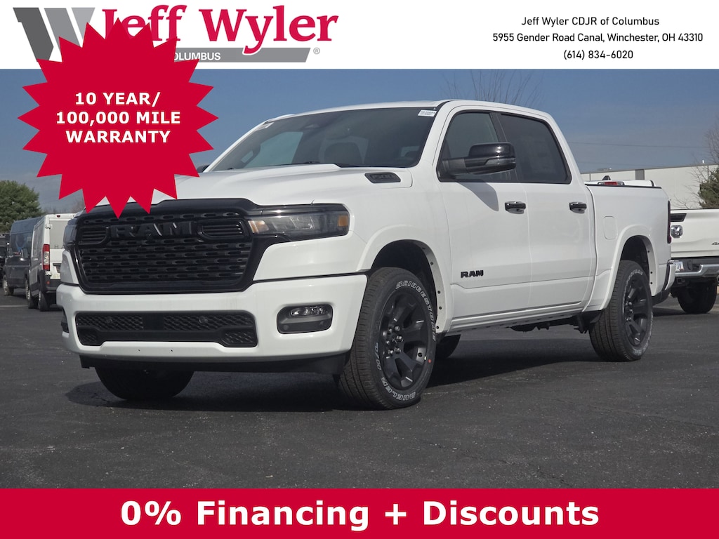 Jeff Wyler Columbus Auto Mall is proud to offer this handsome-looking 2026 Ram 1500.*Wyler Family First Package Includes: NanoCure Appearance Protection: Exterior & Interior Chemical Sealant Applied to Protect Against Environmental Hazards (7 Year Warranty Coverage). Pulse- Rear End Collision Avoidance System Theft Deterrent Strategy gives you 5 Years of Coverage against vehicle theft, Offering up to a $5,000 benefit.** Prices are for retail purchases with select lenders. May require financing through dealer approved lenders. Affiliate Pricing included in dealer discount. Residential restrictions apply. See dealer for complete details.* Price does not include Tax, Title, License and Doc Fee of $398$3500 - 2026 National Retail Bonus Cash . Exp. 04/30/2026 $500 - 2026 National 2026 Military Bonus Cash . Exp. 01/04/2027