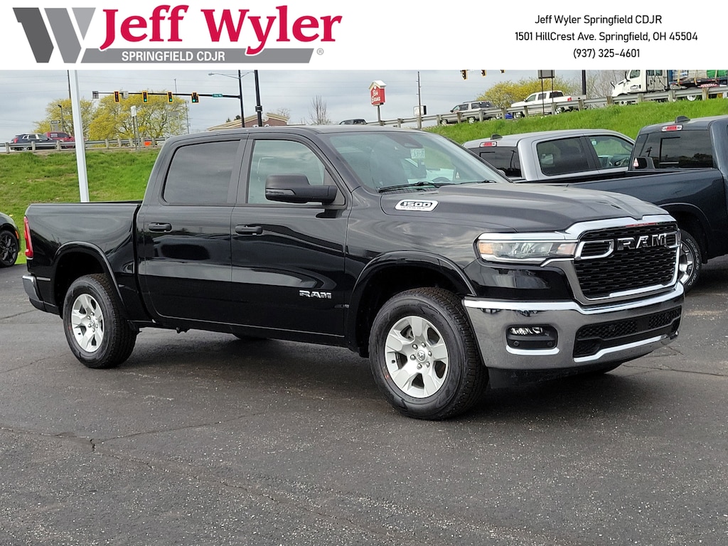 Priced below KBB Fair Purchase Price! Jeff Wyler Springfield Auto Mall is delighted to offer this fantastic-looking 2026 Ram 1500 Big Horn/Lone Star in Diamond Black Crystal Pearlcoat. Well equipped with: Big Horn Level 1 Equipment Group (115V Auxiliary Power Outlet, 2nd Row in Floor Storage Bins, 3 Rear Seat Head Restraints, 4 Way Front Headrests, 400W Inverter, Auto Power-Folding Mirrors, Auto-Dimming Exterior Driver Mirror, Auto-Dimming Rear-View Mirror, Black Exterior Mirrors, Black Premium Power Mirrors, Body Color Fender Flares, Bucket Seats, Center Console Parts Module, Convex Wide-Angle Exterior Mirror Insert, Deluxe Cloth Bucket Seats, Exterior Mirrors Courtesy Lamps, Exterior Mirrors with Heating Element, Exterior Mirrors with Supplemental Signals, Front Seat Back Map Pockets, Full Length Floor Console, Glove Box Lamp, Heated Front Seats, Heated Steering Wheel, Leather Wrapped Steering Wheel, Manual Adjust 4-Way Front Passenger Seat, Power 2-Way Driver Lumbar Adjust, Power Adjust 8-Way Driver Seat, Power Adjustable Pedals, Rear 60/40 Folding Seat, Rear Center Armrest, Rear Dome with on/Off Switch Lamp, Rear Power Sliding Window, Rear Window Defroster, SiriusXM Radio Service, SiriusXM Satellite Radio, Steering Wheel Mounted Audio Controls, Sun Visors with Illuminated Vanity Mirrors, and Universal Garage Door Opener), Quick Order Package 21Z Big Horn, 4-Wheel Disc Brakes, 48V Belt Starter Generator, 4G LTE Wi-Fi Hot Spot, 6 Speakers, ABS brakes, Air Conditioning, Alloy wheels, AM/FM radio, Apple CarPlay, Apple CarPlay/Android Auto, Auto High-beam Headlights, Brake assist, Bumpers: chrome, Cloth Bucket Seats, Compass, Connectivity - US/Canada, Delay-off headlights, Driver door bin, Dual front impact airbags, Dual front side impact airbags, Electronic Stability Control, Front anti-roll bar, Front Bucket Seats, Front Center Armrest w/Storage, Front fog lights, Front License Plate Bracket, Front reading lights, Front wheel independent suspension, Fully automatic headlights, Global Telematics Box Module, Google Android Auto, GPS Antenna Input, Heated door mirrors, Illuminated entry, Integrated Center Stack Radio, Integrated Voice Command with Bluetooth, Low tire pressure warning, Manual Adjust 4-Way Driver Seat, Manual Folding Exterior Mirrors, MOPAR Front and Rear Rubber Floor Mats, Occupant sensing airbag, Outside temperature display, Overhead airbag, Overhead console, Panic alarm, ParkView Rear Back-Up Camera, Passenger door bin, Passenger vanity mirror, Power door mirrors, Power steering, Power windows, Radio data system, Radio: Uconnect 5 W with 8.4" Display, RAM Grille Badge - Chrome, Rear anti-roll bar, Rear step bumper, Rear Wheelhouse Liners, Remote keyless entry, Speed control, Supplier Part Tracking (J-1), Tachometer, Telescoping steering wheel, Tilt steering wheel, Traction control, Trip computer, USB Host Flip, Variably intermittent wipers, Voltmeter, and Wheels: 18" x 8" Cast-Aluminum Painted. 18/24 City/Highway MPGWyler Family First Package Includes: NanoCure Appearance Protection: Exterior & Interior Chemical Sealant Applied to Protect Against Environmental Hazards (7 Year Warranty Coverage). Pulse- Rear end Collision Avoidance System Theft Deterrent Strategy gives you 5 Years of Coverage against vehicle Theft, Offering up to a $5,000 benefit. Available Incentives: $3500 - 2026 National Retail Bonus Cash . Exp. 04/30/2026 $500 - 2026 National 2026 Military Bonus Cash . Exp. 01/04/2027