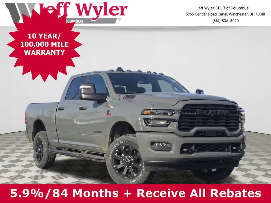Jeff Wyler Columbus Auto Mall is excited to offer this charming 2026 Ram 2500 Big Horn in Ceramic Gray Clearcoat. Well equipped with: Big Horn Level 2 Plus Equipment Group (115-Volt Auxiliary Front Power Outlet, 115V Auxiliary Rear Power Outlet, 12" Touchscreen Display, 2 Way Rear Headrest Seat, 2nd Row in Floor Storage Bins, 4 Way Front Headrests, 400W Inverter, 4G LTE Wi-Fi Hot Spot, 9 Alpine Speakers with Subwoofer, Active Lane Management System, Adaptive Steering System, Air Conditioning ATC with Dual Zone Control, Alexa Built-in, Anti-Spin Differential Rear Axle, Apple CarPlay, Auto High Beam Headlamp Control, Auto Power-Folding Mirrors, Auto-Dimming Rear-View Mirror, Black Exterior Mirrors, Blind Spot and Cross Path Detection, Bucket Seats, Center Stop Lamp with Cargo View Camera, Cluster 7.0" TFT Color Display, Connected Travel and Traffic Services, Connectivity - US/Canada, Dampened Tailgate, Disassociated Touchscreen Display, Drowsy Driver Detection, Dual Glove Boxes, Dual Wireless Charging Pad, Emergency Vehicle Alert System (EVAS), Exterior 115V AC Outlet, Exterior Mirrors Courtesy Lamps, Exterior Mirrors with Heating Element, Exterior Mirrors with Supplemental Signals, Foam Bottle Insert (door Trim Panel), Folding Flat Load Floor Storage, Footwell Courtesy Lamp, For Details, Visit DriveUconnect.com, For More Info, Call 800-643-2112, Forward and Reverse Utility Lights, Front Seat Back Map Pockets, Full Length Upgraded Floor Console, Global Telematics Box Module, Glove Box Lamp, Google Android Auto, GPS Antenna Input, GPS Navigation, HD Radio, Heated Front Seats, Heated Steering Wheel, Integrated Voice Command with Bluetooth, LED Bed Lighting, LED Tail Lamps, Locking Lower Glove Box, Luxury Steering Wheel, Manual Adjust 4-Way Front Passenger Seat, Media Hub with 2 Charge Only USBs, Mirror Running Lights, MOPAR Deployable Bed Step, MOPAR Spray in Bedliner, MOPAR Trailer Camera Wiring with No Camera, Off-Road Info Pages, Power 2-Way Driver Lumbar Adjust, Power Adjust 8-Way Driver Seat, Power Adjust Mirrors, Power Adjustable Pedals, Power Heated Folding Telescopic Mirrors, Power Telescoping Mirrors, Power-Adjustable Convex Aux Mirrors, Premium Cloth Bucket Seats, Radio: Uconnect 5 Navigation with 12.0" Display, Rain Sensitive Windshield Wipers, Rear 60/40 Folding Seat, Rear Dome with on/Off Switch Lamp, Rear Power Sliding Window, Red Tail Lamp Bezels, Remote Start System, Selectable Tire Fill Alert, SiriusXM Radio Service, SiriusXM with 360L, Steering Wheel Mounted Audio Controls, Sun Visors with Illuminated Vanity Mirrors, Surround View Camera System, Traffic Sign Recognition, Trailer Reverse Guidance, Trailer Tire Pressure Monitoring System, Trailer Tow Pages, and Universal Garage Door Opener), Cold Weather Group (Engine Block Heater and MOPAR Winter Front Grille Cover), Night Edition (Black Exterior Truck Badging, Black Interior Accents, Black Wheel Center Hub, Body Color Grille-Surround, Gloss Black Nostrils/Mic Black Grille, Painted Front Bumper, Painted Rear Bumper, and Wheels: 20" x 8.0" Black Painted Aluminum), Quick Order Package 24Z Big Horn, 4-Wheel Disc Brakes, 40/20/40 Split Bench Seat, 5th Wheel/Gooseneck Towing Prep Group, 6 Speakers, ABS brakes, Air Conditioning, Alloy wheels, AM/FM radio: SiriusXM, Apple CarPlay/Android Auto, Brake assist, Bumpers: chrome, Center Hub, Clearance Lamps, Cloth 40/20/40 Bench Seat, Compass, Delay-off headlights, Driver door bin, Dual front impact airbags, Dual front side impact airbags, Electronic Stability Control, Front anti-roll bar, Front Armrest with Cupholders, Front Center Armrest w/Storage, Front fog lights, Front License Plate Bracket, Front reading lights, Fully automatic headlights, Heated door mirrors, Illuminated entry, Low tire pressure warning, Manual Adjust 4-Way Driver Seat, MOPAR Price does not include Tax, Title, License and Documentary Fee$1000 - 2026 National Bonus Cash . Exp. 04/30/2026 $500 - 2026 National 2026 Military Bonus Cash . Exp. 01/04/2027