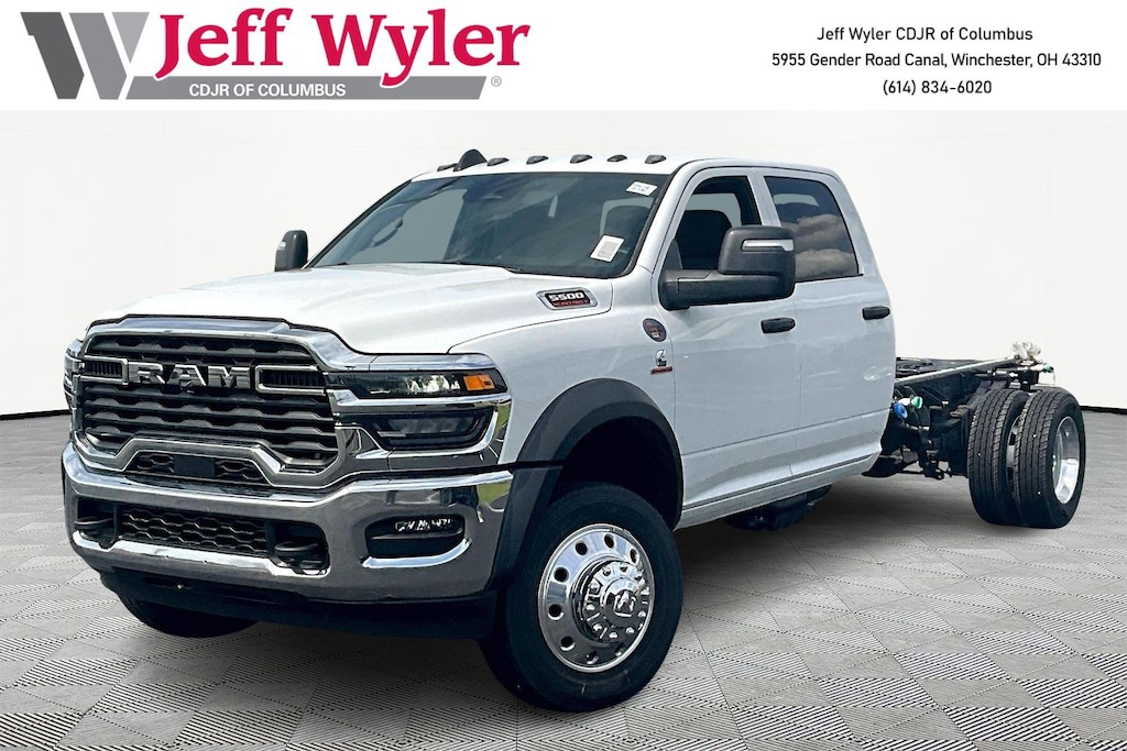 Jeff Wyler Columbus Auto Mall is delighted to offer this gorgeous-looking 2026 Ram 5500HD Tradesman in Bright White Clearcoat. Well equipped with: Chrome Appearance Group (19.5" x 6.0" Steel Wheels, Bright Front Bumper, Center Hub, Chrome Grille Surround, and Matte Black Mesh with Chrome Grille), Cold Weather Group (Engine Block Heater and MOPAR Winter Front Grille Cover), Heavy Duty Snow Plow Prep Group (Heavy Duty Front Suspension Group and Upgraded Rear HD Stabilizer Bar), Max Tow Package (Trailer Brake Control and Trailer Light Check), Quick Order Package 25A Tradesman, Tradesman Level 1 Equipment Group (Black Exterior Mirrors, Black Power Heated Fold Telescope Mirrors, Exterior Mirrors Courtesy Lamps, Exterior Mirrors with Heating Element, Exterior Mirrors with Supplemental Signals, Manual Folding Exterior Mirrors, Manual Telescoping Mirrors, Mirror Running Lights, Power Adjust Mirrors, Power-Adjustable Convex Aux Mirrors, and Rear Window Defroster), 4-Wheel Disc Brakes, 4.44 Axle Ratio, 40/20/40 Split Bench Seat, 4G LTE Wi-Fi Hot Spot, 52 and 22 Gallon Dual Fuel Tanks, 6 Speakers, ABS brakes, Air Conditioning, AM/FM radio: SiriusXM, Apple CarPlay, Apple CarPlay/Android Auto, Compass, Connectivity - US/Canada, Delay-off headlights, Driver door bin, Dual front impact airbags, Dual rear wheels, Electronic Stability Control, Emergency communication system: RAM Connect, For Details, Visit DriveUconnect.com, Front anti-roll bar, Front Armrest with Cupholders, Front Center Armrest w/Storage, Front fog lights, Front License Plate Bracket, Front reading lights, Fully automatic headlights, Global Telematics Box Module, Google Android Auto, GPS Antenna Input, Integrated Voice Command with Bluetooth, Manual Adjust 4-Way Driver Seat, Manual Adjust 4-Way Front Passenger Seat, MyFlexCare Service Diesel, Occupant sensing airbag, Outside temperature display, Overhead console, Panic alarm, ParkView Rear Back-Up Camera, Passenger door bin, Passenger vanity mirror, Power steering, Power Take-Off Right/Left, Power windows, Radio data system, Radio: Uconnect 5 with 8.4" Display, Rear anti-roll bar, Rear Folding Seat, Rear reading lights, Remote keyless entry, Remote USB Port - Charge Only, Speed control, Tachometer, Temperature and Compass Gauge, Tilt steering wheel, Traction control, Variably intermittent wipers, Voltmeter, Wheels: 19.5" x 6.0" Black Painted Steel, and Wheels: 19.5" x 6.0" Forged Aluminum PolisheD.Wyler Family First Package Includes: NanoCure Appearance Protection: Exterior & Interior Chemical Sealant Applied to Protect Against Environmental Hazards (7 Year Warranty Coverage). Pulse- Rear End Collision Avoidance System Theft Deterrent Strategy gives you 5 Years of Coverage against vehicle theft, Offering up to a $5,000 benefit. Price does not include Tax, Title, License and Documentary Fee$2500 - 2026 National Bonus Cash . Exp. 04/30/2026 $500 - 2026 National 2026 Military Bonus Cash . Exp. 01/04/2027