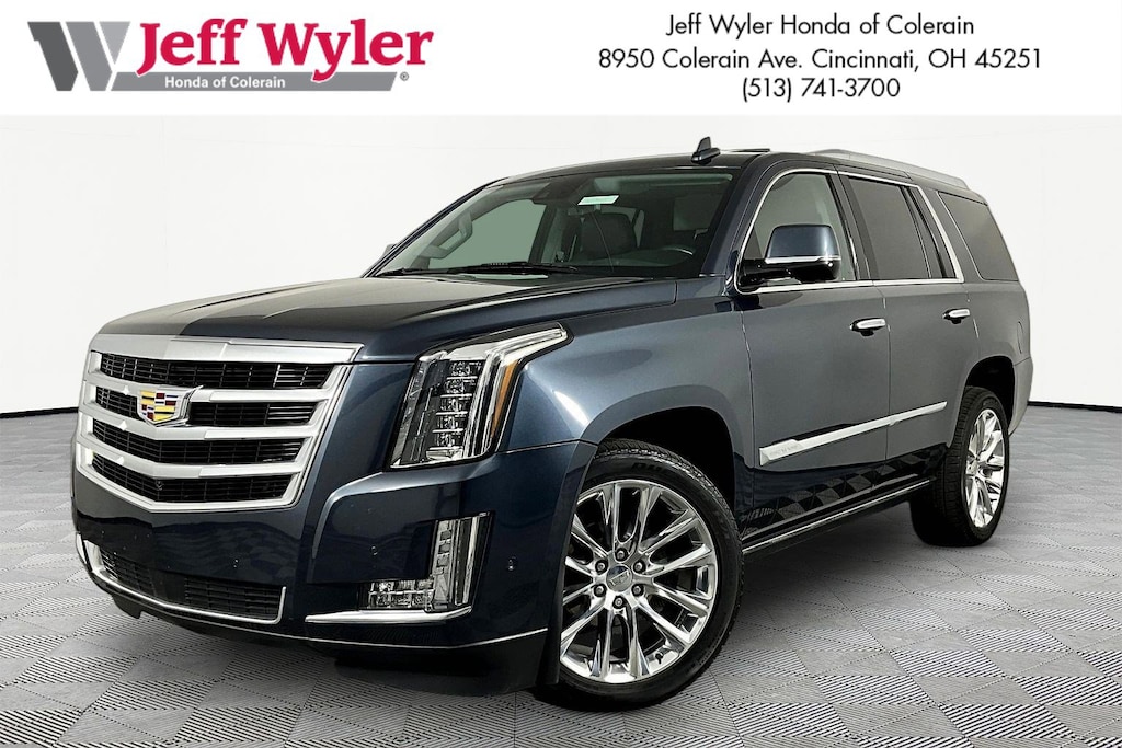 Jeff Wyler Honda of Colerain is honored to offer this outstanding 2020 Cadillac Escalade Premium Luxury in Shadow Metallic. Well equipped with: Driver Assist Package (Advanced Adaptive Cruise Control, Automatic Seat Belt Tightening, Electronic Powered Parking Brake, Enhanced Automatic Emergency Braking, and Reverse Automatic Braking), Driver Awareness Package (Forward Collision Alert, IntelliBeam Automatic High Beam On/Off, Lane Change Alert w/Side Blind Zone Alert, Lane Keep Assist w/Lane Departure Warning, Rear Cross Traffic Alert, and Safety Alert Seat), Preferred Equipment Group 1SC (Illuminating Door Handles, Power Configurable Second Row Bucket Seats, Power Tilt-Sliding Sunroof w/Express-Open/Close, Rear Camera Mirror, Rear Camera Mirror Washer, Rear Seat Entertainment System, Reconfigurable 4-Color Head-Up Display, Running Side Board Assist Steps, and VAC Power 17" Disc Brakes), Theft-Deterrent Package (Inclination Sensor, Theft-Deterrent Alarm System, and Vehicle Interior Movement Sensor), 12-Way Power Front Passenger Seat Adjuster, 16 Speakers, 2-Presets Memory For Driver Seat Adjuster, 3.23 Axle Ratio, 3rd row seats: split-bench, 4-Wheel Disc Brakes, A/V remote, ABS brakes, Adaptive suspension, Adjustable pedals, Air Conditioning, Alloy wheels, AM/FM radio: SiriusXM, Apple CarPlay/Android Auto, Auto High-beam Headlights, Auto tilt-away steering wheel, Auto-dimming door mirrors, Auto-dimming Rear-View mirror, Auto-leveling suspension, Automatic temperature control, Black Front License Plate Bracket, Bodyside moldings, Bose Centerpoint 16 Speaker Surround Sound System, Brake assist, Bumpers: body-color, Compass, Delay-off headlights, Driver door bin, Driver vanity mirror, Dual front impact airbags, Dual front side impact airbags, Electronic Stability Control, Emergency communication system: OnStar and Cadillac connected services capable, Exterior Parking Camera Rear, Front anti-roll bar, Front Bucket Seats, Front Center Armrest w/Storage, Front dual zone A/C, Front reading lights, Front wheel independent suspension, Fully automatic headlights, Garage door transmitter, HD Radio, Headphones, Heads-Up Display, Heated & Cooled Driver & Front Passenger Seats, Heated door mirrors, Heated front seats, Heated rear seats, Heated steering wheel, Illuminated entry, Leather Seating Surfaces, Leather Shift Knob, Leather steering wheel, Low tire pressure warning, Magnetic Ride Control Suspension, Memory seat, Navigation System, Occupant sensing airbag, Outside temperature display, Overhead airbag, Overhead console, Panic alarm, Passenger door bin, Passenger vanity mirror, Pedal memory, Polished Exhaust Tip, Power door mirrors, Power driver seat, Power Liftgate, Power moonroof, Power passenger seat, Power steering, Power windows, Power-Retractable Assist Steps, Radio data system, Radio: AM/FM Cadillac User Experience w/Nav, Rain sensing wipers, Rear air conditioning, Rear anti-roll bar, Rear audio controls, Rear reading lights, Rear window defroster, Rear window wiper, Remote keyless entry, Security system, SiriusXM NavTraffic, SiriusXM Radio, Speed control, Split folding rear seat, Spoiler, Steering wheel memory, Steering wheel mounted audio controls, Tachometer, Telescoping steering wheel, Tilt steering wheel, Traction control, Trip computer, Turn signal indicator mirrors, Variably intermittent wipers, Ventilated front seats, Wheel Locks, Wheels: 22" x 9" 12-Spoke Polished Finish Alloy, and Wheels: 22" x 9" 7-Spoke Alloy w/Chrome Inserts.