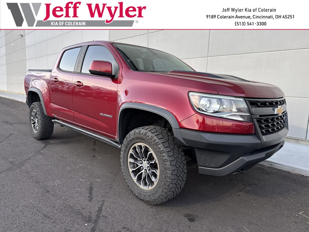Jeff Wyler Kia of Colerain is excited to offer this superb-looking 2017 Chevrolet Colorado ZR2 in Cajun Red Tintcoat. Heavy-Duty Trailering Package, Off-Road Appearance Package, Preferred Equipment Group 4ZR (Black Rear Bumpers, Black Spray-On Bedliner w/Chevrolet Logo, Driver-Selectable Full-Locking Front Differential, Driver-Selectable Full-Locking Rear Differential, Integrated Trailer Brake Controller, and Off-Road Rocker Protection (LPO)), 17" x 8" Aluminum Wheels, 3.42 Rear Axle Ratio, 4-Way Power Front Passenger Seat Adjuster, 4-Wheel Disc Brakes, 6 Speakers, 6-Speaker Audio System Feature, ABS brakes, Air Conditioning, Alloy wheels, AM/FM radio: SiriusXM, Apple CarPlay, Auto-dimming Rear-View mirror, Automatic temperature control, Compass, Delay-off headlights, Driver 4-Way Power Seat Adjuster, Driver door bin, Driver vanity mirror, Dual front impact airbags, Dual front side impact airbags, Electronic Stability Control, Emergency communication system: OnStar Guidance, Exterior Parking Camera Rear, Front anti-roll bar, Front Bucket Seats, Front Center Armrest, Front fog lights, Front License Plate Kit, Front reading lights, Front wheel independent suspension, Fully automatic headlights, Heated Driver & Front Passenger Seats, Heated front seats, Illuminated entry, Leather-Appointed Seat Trim, Low tire pressure warning, Occupant sensing airbag, Outside temperature display, Overhead airbag, Overhead console, Panic alarm, Passenger door bin, Passenger vanity mirror, Power door mirrors, Power Driver Lumbar Control Seat Adjuster, Power driver seat, Power Passenger Lumbar Control Seat Adjuster, Power passenger seat, Power steering, Power windows, Premium audio system: Chevrolet MyLink, Radio data system, Radio: AM/FM Stereo w/8" Diagonal Color Touch Screen, Rear reading lights, Rear seat center armrest, Rear step bumper, Rear window defroster, Remote keyless entry, Security system, SiriusXM Satellite Radio, Speed control, Speed-sensing steering, Steering wheel mounted audio controls, Tachometer, Telescoping steering wheel, Tilt steering wheel, Tow/Haul Mode, Traction control, Trip computer, Variably intermittent wipers, and Wheel Locks Our PRE-OWNED vehicles are put through a rigorous 167- POINT QUALITY ASSURANCE INSPECTION along with an average amount of over $1,400.00 SPENT to recondition each vehicle so we can be sure to deliver you the highest quality vehicle like you deserve! ***ONLINE PRICE DOES NOT INCLUDE WYLER FAMILY FIRST PACKAGE***