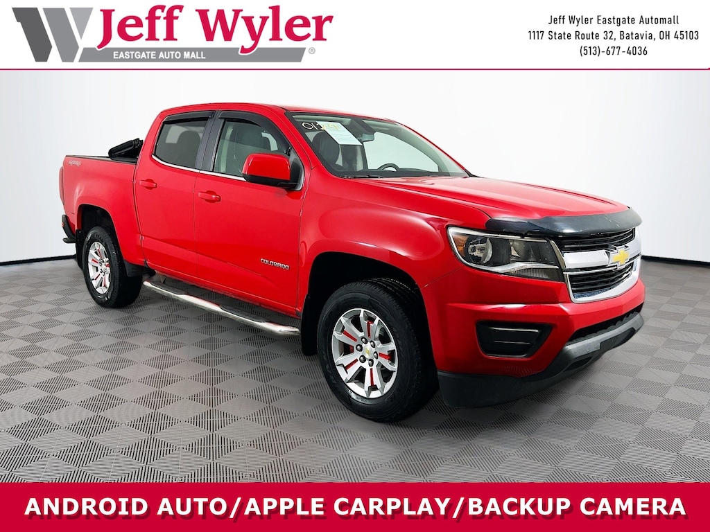 Jeff Wyler Eastgate Auto Mall is proud to offer this attractive-looking 2020 Chevrolet Colorado LT in Red Hot. Well equipped with: Preferred Equipment Group 4LT, 3.42 Rear Axle Ratio, 4-Wheel Disc Brakes, 6 Speakers, 6-Speaker Audio System Feature, ABS brakes, Air Conditioning, Alloy wheels, AM/FM radio: SiriusXM, Apple CarPlay, Bumpers: body-color, Cloth Seat Trim, Compass, Delay-off headlights, Driver 6-Way Power Seat Adjuster, Driver door bin, Driver vanity mirror, Dual front impact airbags, Dual front side impact airbags, Electronic Stability Control, Exterior Parking Camera Rear, Front anti-roll bar, Front Bucket Seats, Front Center Armrest, Front License Plate Kit, Front reading lights, Front wheel independent suspension, Fully automatic headlights, HD Radio, Illuminated entry, Low tire pressure warning, Occupant sensing airbag, Outside temperature display, Overhead airbag, Overhead console, Panic alarm, Passenger door bin, Passenger vanity mirror, Power door mirrors, Power driver seat, Power steering, Power windows, Premium audio system: Chevrolet Infotainment 3 Plus, Radio data system, Radio: Chevrolet Infotainment 3 Plus System, Rear reading lights, Rear seat center armrest, Rear step bumper, Remote keyless entry, Security system, SiriusXM Radio, Speed control, Speed-sensing steering, Steering wheel mounted audio controls, Tachometer, Telescoping steering wheel, Tilt steering wheel, Tow/Haul Mode, Traction control, Trip computer, Variably intermittent wipers, and Wheels: 17" x 8" Blade Silver Metallic Cast Alloy. CARFAX One-Owner. Awards: * 2020 KBB.com Best Buy Awards Ask about available certifications. Used vehicles 10 years of age or newer with less than 100,000 miles are eligible for the Wyler Assurance Program, but eligible vehicles must pass our reconditioning process and multi-point inspection. Provided the vehicle passes inspection, vehicles will be eligible for the 6 month/6,000 mile limited warranty. The 6 month/6,000 mile limited warranty is NOT available on AS-IS vehicles, wholesale vehicles, lease buyback/pass-thru vehicles or un-inspected vehicles. Note that this program can also apply to vehicles where the remaining factory coverage is less than 6 months or 6,000 miles. Please check the Federal Trade Commission (FTC) Buyers guide on the vehicle for full details as to whether or not warranty coverage may apply. Contact Dealer for additional details. The Wyler Assurance 6 month/6,000 Mile limited warranty ends 6 months from the date of the Retail Purchase Agreement (BUYERS ORDER) or when the vehicle's odometer registers 6,000 additional miles to the mileage listed on the BUYERS ORDER, whichever comes first. Your Deductible - The warranty holder on your contract pays the first $100 of each covered repair.