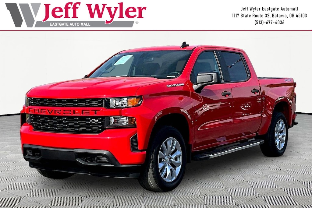 Jeff Wyler Eastgate Auto Mall is delighted to offer this good-looking 2020 Chevrolet Silverado 1500 Custom in Red Hot. Well equipped with: Custom Convenience Package (Electric Rear-Window Defogger, EZ Lift Power Lock & Release Tailgate, LED Cargo Area Lighting, Remote Vehicle Starter System, and Theft Deterrent System (Unauthorized Entry)), Custom Value Package, Infotainment Package (4G LTE Wi-Fi Hot Spot Capable, Chevrolet Connected Access Capable, Compass, OnStar & Chevrolet Connected Services Capable, and SiriusXM Radio), Preferred Equipment Group 1CX (170 Amps Alternator, 3.5" Diagonal Monochromatic Display, Bluetooth® For Phone, Body Color Grille, Color-Keyed Carpeting Floor Covering, Deep-Tinted Glass, Front Frame-Mounted Black Recovery Hooks, Front Rubberized Vinyl Floor Mats, Locking Tailgate, Manual Tilt-Wheel Steering Column, Power Door Locks, Power Front Windows w/Driver Express Up/Down, Power Front Windows w/Passenger Express Down, Power Rear Windows w/Express Down, Rear 60/40 Folding Bench Seat (Folds Up), Rear Rubberized-Vinyl Floor Mats, Remote Keyless Entry, and Steering Wheel Mounted Electronic Cruise Control), Trailering Package (Hitch Guidance), 120-Volt Bed Mounted Power Outlet, 120-Volt Instrument Panel Power Outlet, 220 Amps Alternator, 3.42 Rear Axle Ratio, 4-Wheel Disc Brakes, 40/20/40 Front Split Bench Seat, 6 Speakers, 6" Rectangular Chromed Tubular Assist Steps (LPO), ABS brakes, Air Conditioning, Alloy wheels, Apple CarPlay/Android Auto, Automatic Stop/Start, Brake assist, Bumpers: body-color, Chevytec Spray-On Black Bedliner, Cloth Seat Trim, Delay-off headlights, Driver door bin, Driver vanity mirror, Dual front impact airbags, Dual front side impact airbags, Electronic Stability Control, Exterior Parking Camera Rear, Front 40/20/40 Split-Bench Seat, Front anti-roll bar, Front Black Bowtie Emblem (LPO), Front Center Armrest, Front reading lights, Front wheel independent suspension, Fully automatic headlights, Heated door mirrors, Heavy Duty Suspension, Heavy-Duty Rear Locking Differential, Illuminated entry, Low tire pressure warning, Occupant sensing airbag, Outside temperature display, Overhead airbag, Overhead console, Panic alarm, Passenger door bin, Passenger vanity mirror, Polished Exhaust Tip, Power door mirrors, Power steering, Power windows, Radio data system, Radio: Chevrolet Infotainment 3 System, Rear reading lights, Rear step bumper, Remote keyless entry, Single-Zone Manual/Semi-Automatic Air Conditioning, Speed control, Speed-sensing steering, Split folding rear seat, Tachometer, Tilt steering wheel, Traction control, Trip computer, Variably intermittent wipers, Voltmeter, and Wheels: 20" x 9" Bright Silver Painted Aluminum. Clean CARFAX. Ask about available certifications. Used vehicles 10 years of age or newer with less than 100,000 miles are eligible for the Wyler Assurance Program, but eligible vehicles must pass our reconditioning process and multi-point inspection. Provided the vehicle passes inspection, vehicles will be eligible for the 6 month/6,000 mile limited warranty. The 6 month/6,000 mile limited warranty is NOT available on AS-IS vehicles, wholesale vehicles, lease buyback/pass-thru vehicles or un-inspected vehicles. Note that this program can also apply to vehicles where the remaining factory coverage is less than 6 months or 6,000 miles. Please check the Federal Trade Commission (FTC) Buyers guide on the vehicle for full details as to whether or not warranty coverage may apply. Contact Dealer for additional details. The Wyler Assurance 6 month/6,000 Mile limited warranty ends 6 months from the date of the Retail Purchase Agreement (BUYERS ORDER) or when the vehicle's odometer registers 6,000 additional miles to the mileage listed on the BUYERS ORDER, whichever comes first. Your Deductible - The warranty holder on your contract pays the first $100 of each covered repair.