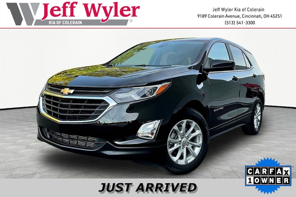 Jeff Wyler Kia of Colerain is proud to offer this stunning 2021 Chevrolet Equinox LT in Mosaic Black Metallic. Preferred Equipment Group 1LT, 17" Aluminum Wheels, 2 Rear USB Charging-Only Ports, 2 USB Ports & Auxiliary Input Jack, 2-Way Power Driver Lumbar Control Seat Adjuster, 3.50 Final Drive Axle Ratio, 4-Wheel Disc Brakes, 6 Speaker Audio System Feature, 6 Speakers, 8-Way Power Driver Seat Adjuster, ABS brakes, Air Conditioning, Alloy wheels, AM/FM radio: SiriusXM, Apple CarPlay/Android Auto, Auto High-beam Headlights, Bluetooth® For Phone, Brake assist, Bumpers: body-color, Compass, Delay-off headlights, Driver door bin, Driver vanity mirror, Dual front impact airbags, Dual front side impact airbags, Electronic Stability Control, Emergency communication system: OnStar and Chevrolet connected services capable, Four wheel independent suspension, Front anti-roll bar, Front Bucket Seats, Front Center Armrest, Front Passenger 4-Way Manual Seat Adjuster, Front reading lights, Fully automatic headlights, Heated door mirrors, High-Intensity Discharge Headlights, Illuminated entry, Low tire pressure warning, Occupant sensing airbag, Outside temperature display, Overhead airbag, Overhead console, Panic alarm, Passenger door bin, Passenger vanity mirror, Power door mirrors, Power driver seat, Power steering, Power windows, Premium audio system: Chevrolet Infotainment 3, Premium Cloth Seat Trim, Radio data system, Radio: Chevrolet Infotainment 3 System w/AM/FM, Rear anti-roll bar, Rear reading lights, Rear seat center armrest, Rear window defroster, Rear window wiper, Remote keyless entry, Security system, SiriusXM Radio, Speed control, Speed-sensing steering, Split folding rear seat, Spoiler, Steering wheel mounted audio controls, Tachometer, Telescoping steering wheel, Tilt steering wheel, Traction control, Trip computer, and Variably intermittent wipers Our PRE-OWNED vehicles are put through a rigorous 167- POINT QUALITY ASSURANCE INSPECTION along with an average amount of over $1,400.00 SPENT to recondition each vehicle so we can be sure to deliver you the highest quality vehicle like you deserve! ***ONLINE PRICE DOES NOT INCLUDE WYLER FAMILY FIRST PACKAGE***
