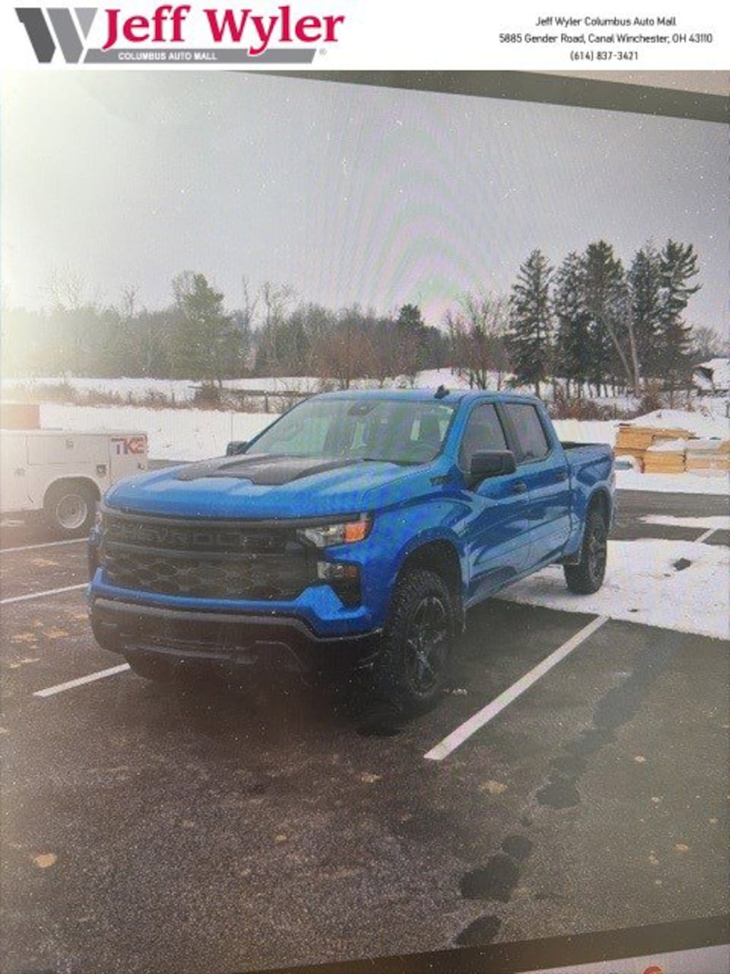 2022 Chevrolet Silverado 1500 Glacier Blue Metallic 2.7L Turbo 8-Speed Automatic Custom Trail Boss 4WD 8-Speed Automatic, 4WD, Black Cloth. CARFAX One-Owner. Clean CARFAX.Come visit the all new Jeff Wyler Chevrolet of Columbus the official Home of the Fresh Start Program! See how easy it is drive your new vehicle home today.