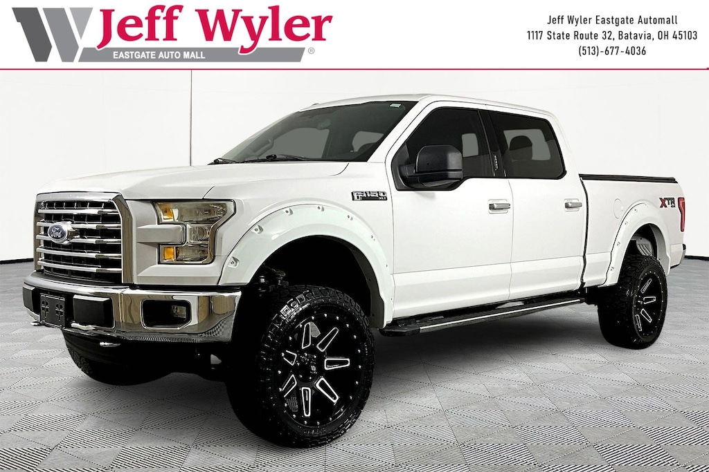 Jeff Wyler Eastgate Auto Mall is proud to offer this fantastic 2017 Ford F-150 XLT in White. Well equipped with: 3.31 Axle Ratio, 4-Wheel Disc Brakes, 6 Speakers, ABS brakes, Air Conditioning, Alloy wheels, AM/FM radio, Brake assist, Bumpers: chrome, CD player, Compass, Delay-off headlights, Driver door bin, Driver vanity mirror, Dual front impact airbags, Dual front side impact airbags, Electronic Stability Control, Front anti-roll bar, Front Center Armrest w/Storage, Front fog lights, Front reading lights, Front wheel independent suspension, Fully automatic headlights, Illuminated entry, Low tire pressure warning, Occupant sensing airbag, Outside temperature display, Overhead airbag, Panic alarm, Passenger door bin, Passenger vanity mirror, Power door mirrors, Power steering, Power windows, Radio data system, Radio: AM/FM Stereo/Single-CD Player, Rear reading lights, Rear step bumper, Remote keyless entry, Security system, Speed control, Speed-sensing steering, Split folding rear seat, Steering wheel mounted audio controls, SYNC, Tachometer, Telescoping steering wheel, Tilt steering wheel, Traction control, Variably intermittent wipers, Voltmeter, and Wheels: 17" Silver Painted Aluminum. Clean CARFAX. Awards: * 2017 KBB.com 10 Most Awarded Brands * 2017 KBB.com Brand Image Awards Ask about available certifications. Used vehicles 10 years of age or newer with less than 100,000 miles are eligible for the Wyler Assurance Program, but eligible vehicles must pass our reconditioning process and multi-point inspection. Provided the vehicle passes inspection, vehicles will be eligible for the 6 month/6,000 mile limited warranty. The 6 month/6,000 mile limited warranty is NOT available on AS-IS vehicles, wholesale vehicles, lease buyback/pass-thru vehicles or un-inspected vehicles. Note that this program can also apply to vehicles where the remaining factory coverage is less than 6 months or 6,000 miles. Please check the Federal Trade Commission (FTC) Buyers guide on the vehicle for full details as to whether or not warranty coverage may apply. Contact Dealer for additional details. The Wyler Assurance 6 month/6,000 Mile limited warranty ends 6 months from the date of the Retail Purchase Agreement (BUYERS ORDER) or when the vehicle's odometer registers 6,000 additional miles to the mileage listed on the BUYERS ORDER, whichever comes first. Your Deductible - The warranty holder on your contract pays the first $100 of each covered repair.