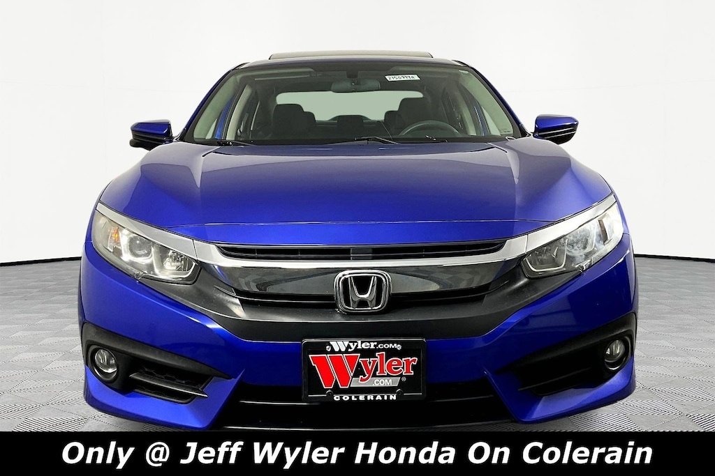 Jeff Wyler Honda of Colerain is pumped up to offer this good-looking 2017 Honda Civic EX-T in Aegean Blue Metallic. Well equipped with: 17" Alloy Wheels, 4-Wheel Disc Brakes, 8 Speakers, ABS brakes, Air Conditioning, Alloy wheels, AM/FM radio: SiriusXM, Apple CarPlay/Android Auto, Automatic temperature control, Brake assist, Bumpers: body-color, Cloth Seat Trim, Compass, Delay-off headlights, Driver door bin, Driver vanity mirror, Dual front impact airbags, Dual front side impact airbags, Electronic Stability Control, Emergency communication system, Exterior Parking Camera Rear, Four wheel independent suspension, Front anti-roll bar, Front Bucket Seats, Front Center Armrest, Front dual zone A/C, Front fog lights, Front reading lights, Fully automatic headlights, Heated door mirrors, Heated front seats, Illuminated entry, Low tire pressure warning, Occupant sensing airbag, Outside temperature display, Overhead airbag, Panic alarm, Passenger door bin, Passenger vanity mirror, Power door mirrors, Power moonroof, Power steering, Power windows, Radio data system, Radio: 180-Watt AM/FM/HD/SiriusXM Audio System, Rear anti-roll bar, Rear seat center armrest, Rear window defroster, Reclining Heated Front Bucket Seats, Remote keyless entry, Security system, Speed control, Speed-sensing steering, Speed-Sensitive Wipers, Split folding rear seat, Spoiler, Steering wheel mounted audio controls, Tachometer, Telescoping steering wheel, Tilt steering wheel, Traction control, Trip computer, and Variably intermittent wipers.