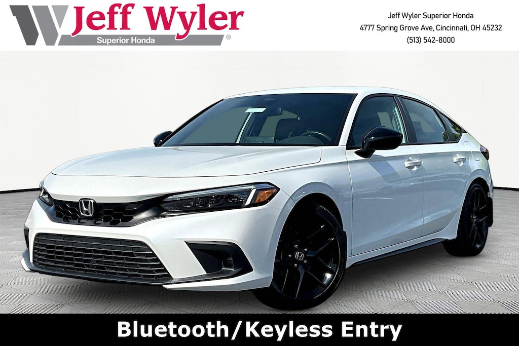 Jeff Wyler Superior Honda is pumped up to offer this outstanding-looking 2024 Honda Civic Sport in Platinum White Pearl. BLUETOOTH, CLEAN CARFAX...NO ACCIDENTS, HONDA CERTIFIED!, REMAINDER OF FACTORY WARRANTY, RECENT SUPERIOR TRADE, and ONE OWNER Civic Sport, HondaTrue Certified Certified, 4D Hatchback, 2.0L I4 DOHC 16V, CVT, FWD, Platinum White Pearl, 18" Alloy Wheels, 4-Wheel Disc Brakes, 8 Speakers, ABS brakes, Adaptive Cruise Control: Adaptive Cruise Control (ACC) with Low-Speed Follow, Air Conditioning, Alloy wheels, AM/FM radio, Apple CarPlay/Android Auto, Auto High-beam Headlights, Automatic temperature control, Brake assist, Bumpers: body-color, Cloth/Leatherette Seating Surfaces, Delay-off headlights, Driver door bin, Driver vanity mirror, Dual front impact airbags, Dual front side impact airbags, Electronic Stability Control, Emergency communication system: HondaLink, Exterior Parking Cameras, Four wheel independent suspension, Front anti-roll bar, Front Bucket Seats, Front Center Armrest, Front reading lights, Fully automatic headlights, Illuminated entry, Knee airbag, Lane departure: Lane Keeping Assist System (LKAS) active, Leather Shift Knob, Leather steering wheel, Low tire pressure warning, Occupant sensing airbag, Outside temperature display, Overhead airbag, Panic alarm, Passenger door bin, Passenger vanity mirror, Power door mirrors, Power steering, Power windows, Radio data system, Radio: 180-Watt Audio System, Rear anti-roll bar, Rear side impact airbag, Rear window defroster, Rear window wiper, Remote keyless entry, Security system, Speed control, Speed-sensing steering, Split folding rear seat, Steering wheel mounted audio controls, Tachometer, Telescoping steering wheel, Tilt steering wheel, Traction control, Trip computer, and Voltmeter Our PRE-OWNED vehicles are put through a rigorous 167- POINT QUALITY ASSURANCE INSPECTION along with an average amount of over $1,400.00 SPENT to recondition each vehicle so we can be sure to deliver you the highest quality vehicle like you deserve! ***ONLINE PRICE DOES NOT INCLUDE WYLER FAMILY FIRST PACKAGE*** Stop by 4777 Spring Grove Ave. Road to see for yourself, or give us a call @ 283-209-1858 to schedule your test drive!Vehicle pricing includes all offers and incentives. Due to limited inventory, offers and pricing are all subject to change. Tax, Title, Tags and $387 doc fees are not included in vehicle price shown and must be paid by the purchaser. Doc fees vary by location. Financing w/approved credit. Mileage est. Based on current EPA estimates reflecting new EPA methods beginning w/ 2008 models. For comparison only. Do not compare to pre 2008 models. Actual mileage may vary based on how you drive and maintain your vehicle. Information on this site includes 3rd party data believed to be reliable, subject to change without notice. Jeff Wyler reserves the right to correct any errors and/or omissions in the compilation or presentation of this data and makes no representations express or implied to any prospective purchaser as to the vehicle's condition, specifications, history, equipment or equipment function, price or warranties. This vehicle may be subject to an open recall that has not been repaired. Please consult safercar.gov for more information on the current status. It is the responsibility of purchaser to confirm any data prior to purchase. Other than MSRP, all offers only apply to this vehicle and are subject to change. Vehicle prices are subject to change and all vehicles are subject to prior sale and may not be available when you are ready to purchase. Prices listed on any other website may not be accepted. Dealership advertises the sale of vehicles through a number of different channels and cannot always control when they are updated. Wyler? and Jeff Wyler? are registered trademarks of the Jeff Wyler Automotive Family, Inc.