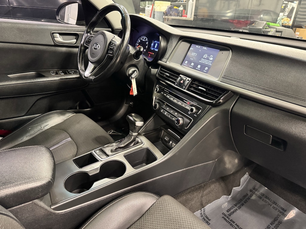 Jeff Wyler Kia of Colerain is pleased to offer this great-looking 2018 Kia Optima S in Ebony Black. Panoramic Sunroof Package (LED Overhead Front & Rear Reading Lamps and Panoramic Sunroof), 4-Wheel Disc Brakes, 6 Speakers, 6.5J x 17" Alloy Wheels, ABS brakes, Air Conditioning, Alloy wheels, AM/FM radio: SiriusXM, Anti-whiplash front head restraints, Apple CarPlay & Android Auto, Brake assist, Bumpers: body-color, Carpeted Floor Mats, Delay-off headlights, Driver door bin, Driver vanity mirror, Dual front impact airbags, Dual front side impact airbags, Electronic Stability Control, Emergency communication system, Exterior Parking Camera Rear, Four wheel independent suspension, Front anti-roll bar, Front Bucket Seats, Front Center Armrest, Front fog lights, Front reading lights, Fully automatic headlights, Heated door mirrors, Illuminated entry, Knee airbag, Leather Shift Knob, Leather steering wheel, Low tire pressure warning, Occupant sensing airbag, Outside temperature display, Overhead airbag, Overhead console, Panic alarm, Passenger door bin, Passenger vanity mirror, Power door mirrors, Power driver seat, Power steering, Power windows, Radio data system, Radio: AM/FM/MP3/SiriusXM Audio System, Rear anti-roll bar, Rear Parking Sensors, Rear seat center armrest, Rear window defroster, Remote keyless entry, Security system, Speed control, Speed-sensing steering, Split folding rear seat, Spoiler, Sport Cloth Seat Trim, Steering wheel mounted audio controls, Tachometer, Telescoping steering wheel, Tilt steering wheel, Traction control, Trip computer, Turn signal indicator mirrors, and Variably intermittent wipers Our PRE-OWNED vehicles are put through a rigorous 167- POINT QUALITY ASSURANCE INSPECTION along with an average amount of over $1,400.00 SPENT to recondition each vehicle so we can be sure to deliver you the highest quality vehicle like you deserve! ***ONLINE PRICE DOES NOT INCLUDE WYLER FAMILY FIRST PACKAGE***