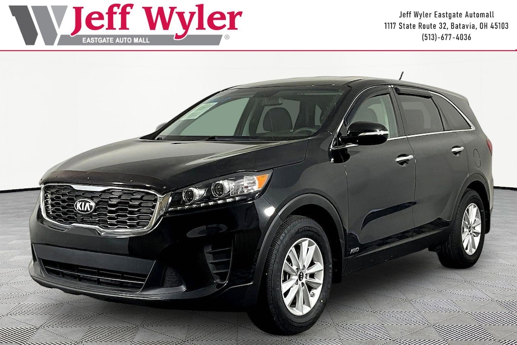 Jeff Wyler Eastgate Auto Mall is very proud to offer this wonderful-looking 2020 Kia Sorento LX in Ebony Black. Well equipped with: 17" x 7.0" Alloy Wheels, 3.648 Axle Ratio, 3rd row seats: split-bench, 4-Wheel Disc Brakes, 6 Speakers, ABS brakes, Air Conditioning, Alloy wheels, AM/FM radio, Apple CarPlay & Android Auto, Brake assist, Bumpers: body-color, Carpeted Floor Mats (7-Passenger), Delay-off headlights, Driver door bin, Driver vanity mirror, Dual front impact airbags, Dual front side impact airbags, Electronic Stability Control, Exterior Parking Camera Rear, Four wheel independent suspension, Front anti-roll bar, Front Bucket Seats, Front Center Armrest, Front reading lights, Fully automatic headlights, Heated door mirrors, Illuminated entry, Low tire pressure warning, Occupant sensing airbag, Outside temperature display, Overhead airbag, Overhead console, Panic alarm, Passenger door bin, Passenger vanity mirror, Power door mirrors, Power steering, Power windows, Radio data system, Radio: AM/FM/MP3 Audio System, Rear anti-roll bar, Rear seat center armrest, Rear window defroster, Rear window wiper, Remote keyless entry, Security system, Speed control, Speed-sensing steering, Split folding rear seat, Spoiler, Steering wheel mounted audio controls, Tachometer, Telescoping steering wheel, Tilt steering wheel, Traction control, Trip computer, Turn signal indicator mirrors, Variably intermittent wipers, and YES Essentials Cloth Seat Trim. Clean CARFAX. Awards: * JD Power Initial Quality Study (IQS) Ask about available certifications. Used vehicles 10 years of age or newer with less than 100,000 miles are eligible for the Wyler Assurance Program, but eligible vehicles must pass our reconditioning process and multi-point inspection. Provided the vehicle passes inspection, vehicles will be eligible for the 6 month/6,000 mile limited warranty. The 6 month/6,000 mile limited warranty is NOT available on AS-IS vehicles, wholesale vehicles, lease buyback/pass-thru vehicles or un-inspected vehicles. Note that this program can also apply to vehicles where the remaining factory coverage is less than 6 months or 6,000 miles. Please check the Federal Trade Commission (FTC) Buyers guide on the vehicle for full details as to whether or not warranty coverage may apply. Contact Dealer for additional details. The Wyler Assurance 6 month/6,000 Mile limited warranty ends 6 months from the date of the Retail Purchase Agreement (BUYERS ORDER) or when the vehicle's odometer registers 6,000 additional miles to the mileage listed on the BUYERS ORDER, whichever comes first. Your Deductible - The warranty holder on your contract pays the first $100 of each covered repair.