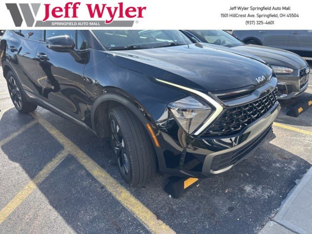 Jeff Wyler Springfield Auto Mall is very proud to offer this wonderful 2023 Kia Sportage X-Line in Ebony Black. Well equipped with: Sage Green Interior Color Package, X-Line Premium Package (LED Interior Lighting, Panoramic Sunroof, and Smart Power Liftgate), 4-Wheel Disc Brakes, 6 Speakers, ABS brakes, Air Conditioning, Alloy wheels, AM/FM radio: SiriusXM, Apple CarPlay & Android Auto, Auto High-beam Headlights, Automatic temperature control, Axle Ratio: 3.648, Brake assist, Bumpers: body-color, Carpet Floor Mats X-Line, Compass, Delay-off headlights, Driver door bin, Driver vanity mirror, Dual front impact airbags, Dual front side impact airbags, Electronic Stability Control, Emergency communication system, Four wheel independent suspension, Front anti-roll bar, Front Bucket Seats, Front Center Armrest, Front dual zone A/C, Fully automatic headlights, harman/kardon® Speakers, Heated door mirrors, Heated Front Bucket Seats, Heated front seats, Illuminated entry, Interior Lighting, Leather Shift Knob, Leather steering wheel, Low tire pressure warning, Navigation System, Occupant sensing airbag, Outside temperature display, Overhead airbag, Overhead console, Panic alarm, Passenger door bin, Passenger vanity mirror, Power door mirrors, Power driver seat, Power steering, Power windows, Premium Leatherette Seat Trim, Radio: AM/FM/HD Audio System, Rain sensing wipers, Rear anti-roll bar, Rear seat center armrest, Rear window defroster, Rear window wiper, Remote keyless entry, Security system, Speed control, Speed-sensing steering, Split folding rear seat, Spoiler, Steering wheel mounted audio controls, Tachometer, Telescoping steering wheel, Tilt steering wheel, Traction control, Trip computer, Turn signal indicator mirrors, Variably intermittent wipers, and Wheels: 19" Gloss Black Alloy. Ask about available certifications. Used vehicles 10 years of age or newer with less than 100,000 miles are eligible for the Wyler Assurance Program, but eligible vehicles must pass our reconditioning process and multi-point inspection. Provided the vehicle passes inspection, vehicles will be eligible for the 6 month/6,000 mile limited warranty. The 6 month/6,000 mile limited warranty is NOT available on AS-IS vehicles, wholesale vehicles, lease buyback/pass-thru vehicles or un-inspected vehicles. Note that this program can also apply to vehicles where the remaining factory coverage is less than 6 months or 6,000 miles. Please check the Federal Trade Commission (FTC) Buyers guide on the vehicle for full details as to whether or not warranty coverage may apply. Contact Dealer for additional details. The Wyler Assurance 6 month/6,000 Mile limited warranty ends 6 months from the date of the Retail Purchase Agreement (BUYERS ORDER) or when the vehicle's odometer registers 6,000 additional miles to the mileage listed on the BUYERS ORDER, whichever comes first. Your Deductible - The warranty holder on your contract pays the first $100 of each covered repair.