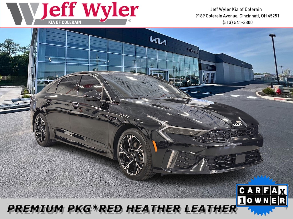 Jeff Wyler Kia of Colerain is very proud to offer this gorgeous 2025 Kia K5 GT-Line in Aurora Black Pearl. GT-Line Premium Package (Active Sound Design, Bose Premium Audio, LED Interior Lighting, and Panoramic Sunroof), GT-Line Red Interior Package (SynTex Seat Trim), 4-Wheel Disc Brakes, 6 Speakers, ABS brakes, Air Conditioning, Alloy wheels, AM/FM radio: SiriusXM, Auto High-beam Headlights, Automatic temperature control, Brake assist, Bumpers: body-color, Cargo Tray, Carpeted Floor Mats, Delay-off headlights, Driver door bin, Driver vanity mirror, Dual front impact airbags, Dual front side impact airbags, Electronic Stability Control, Emergency communication system: Kia Connect (includes 1 year free trial), Four wheel independent suspension, Front anti-roll bar, Front Bucket Seats, Front Center Armrest, Front dual zone A/C, Front fog lights, Front reading lights, Fully automatic headlights, Heated door mirrors, Heated Front Bucket Seats, Heated front seats, Heated steering wheel, Illuminated entry, Knee airbag, Leather Shift Knob, Leather steering wheel, LED Trunk Light, Low tire pressure warning, Navigation System, Occupant sensing airbag, Outside temperature display, Overhead airbag, Overhead console, Panic alarm, Passenger door bin, Passenger vanity mirror, Power door mirrors, Power driver seat, Power steering, Power windows, Radio data system, Radio: AM/FM Audio System, Rear anti-roll bar, Rear seat center armrest, Rear side impact airbag, Rear window defroster, Remote keyless entry, Security system, Speed control, Speed-sensing steering, Split folding rear seat, Sport steering wheel, Steering wheel mounted audio controls, Tachometer, Telescoping steering wheel, Tilt steering wheel, Traction control, Trip computer, Turn signal indicator mirrors, Variably intermittent wipers, and Wheels: 18" x 7.5J Gloss Black Machined Finish Alloy Our PRE-OWNED vehicles are put through a rigorous 167- POINT QUALITY ASSURANCE INSPECTION along with an average amount of over $1,400.00 SPENT to recondition each vehicle so we can be sure to deliver you the highest quality vehicle like you deserve! ***ONLINE PRICE DOES NOT INCLUDE WYLER FAMILY FIRST PACKAGE***