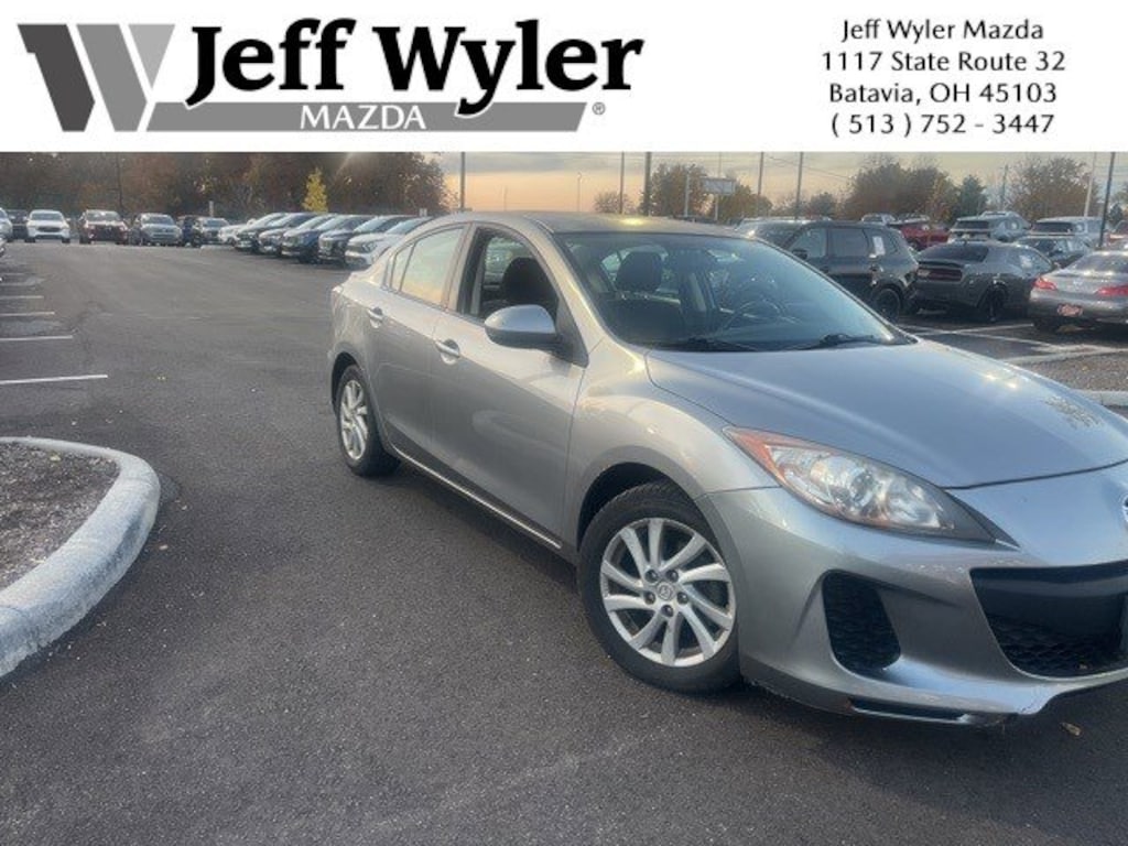 Jeff Wyler Eastgate Auto Mall is delighted to offer this superb 2012 Mazda Mazda3 i Touring in Liquid Silver Metallic. Well equipped with: 16" x 6.5J Alloy Wheels, 4-Wheel Disc Brakes, 6 Speakers, ABS brakes, Air Conditioning, Alloy wheels, AM/FM radio, AM/FM/CD/MP3 Compatible Audio System, Brake assist, Bumpers: body-color, CD player, Cloth Seat Trim, Driver door bin, Driver vanity mirror, Dual front impact airbags, Dual front side impact airbags, Electronic Stability Control, Four wheel independent suspension, Front anti-roll bar, Front Bucket Seats, Front Center Armrest, Front reading lights, Illuminated entry, Low tire pressure warning, Occupant sensing airbag, Outside temperature display, Overhead airbag, Panic alarm, Passenger door bin, Passenger vanity mirror, Power door mirrors, Power steering, Power windows, Rear anti-roll bar, Rear seat center armrest, Rear window defroster, Reclining Front Bucket Seats, Remote keyless entry, Speed control, Speed-sensing steering, Split folding rear seat, Steering wheel mounted audio controls, Tachometer, Telescoping steering wheel, Tilt steering wheel, Traction control, and Variably intermittent wipers. Reviews: * Great gas mileage and an enthusiast-oriented chassis are fused with a premium interior and dynamite styling to form the 2012 Mazda3 sedan and hatchback. If you thought you couldnât have all this in a small affordable car, Mazda just proved you wrong. Source: KBB.com * Precise handling; high fuel economy with optional 2.0-liter engine; stylish, well-equipped interior; impressive list of luxury options; extra utility of four-door hatchback. Source: EdmundsAwards: * 2012 KBB.com 10 Coolest New Cars Under $18,000 * 2012 KBB.com 10 Best Sedans Under $25,000 * 2012 KBB.com 10 Best Used Cars Under $10,000 Ask about available certifications. Used vehicles 10 years of age or newer with less than 100,000 miles are eligible for the Wyler Assurance Program, but eligible vehicles must pass our reconditioning process and multi-point inspection. Provided the vehicle passes inspection, vehicles will be eligible for the 6 month/6,000 mile limited warranty. The 6 month/6,000 mile limited warranty is NOT available on AS-IS vehicles, wholesale vehicles, lease buyback/pass-thru vehicles or un-inspected vehicles. Note that this program can also apply to vehicles where the remaining factory coverage is less than 6 months or 6,000 miles. Please check the Federal Trade Commission (FTC) Buyers guide on the vehicle for full details as to whether or not warranty coverage may apply. Contact Dealer for additional details. The Wyler Assurance 6 month/6,000 Mile limited warranty ends 6 months from the date of the Retail Purchase Agreement (BUYERS ORDER) or when the vehicle's odometer registers 6,000 additional miles to the mileage listed on the BUYERS ORDER, whichever comes first. Your Deductible - The warranty holder on your contract pays the first $100 of each covered repair.