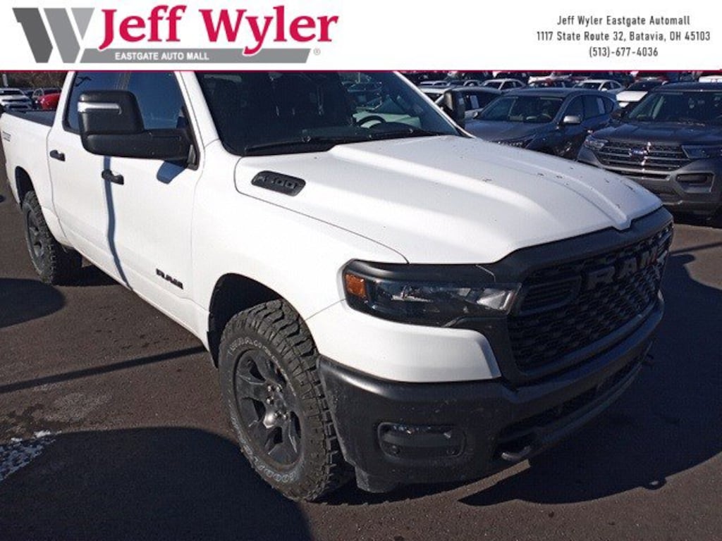 Jeff Wyler Eastgate Auto Mall is pleased to offer this wonderful 2025 Ram 1500 Warlock in Bright White Clearcoat. Well equipped with: Quick Order Package 21B Warlock (115V Auxiliary Power Outlet, 400W Inverter, Cluster 7.0" TFT Color Display, Dual Exhaust w/Black Tips, E-Locker Rear Axle, Front LED Fog Lamps, Front Performance Tuned Shock Absorbers, MOPAR Front & Rear Rubber Floor Mats, Raised Ride Height, Rear Performance Tuned Shock Absorbers, Selec-Speed Control, Tow Hooks, Warlock Decal, and Wheels: 18" x 8.0" Black Painted Aluminum), Towing Technology Group (Trailer Hitch Line-Up Assist), Tradesman Level 1 Equipment Group (2nd Row In Floor Storage Bins, 3 Rear Seat Head Restraints, 4 Way Front Headrests, 40/20/40 Split Bench Seat, Cloth Bench Seat, Front & Rear Floor Mats, Front Center Seat Cushion Storage, Front Seat Back Map Pockets, Manual Adjust 4-Way Driver Seat, Manual Adjust 4-Way Front Passenger Seat, Rear 60/40 Folding Seat, Rear Power Sliding Window, Seat Parts Module II, and SiriusXM Satellite Radio), Trailer Tow Group (Accent Color Tailgate Handle, Black Exterior Mirrors, Black Trailer Tow Power Mirrors, Exterior Mirrors Courtesy Lamps, Exterior Mirrors w/Heating Element, Exterior Mirrors w/Supplemental Signals, Manual Folding Exterior Mirrors, Manual Telescoping Mirrors, Mirror Clearance/Running Lights, Power-Adjustable Convex Aux Mirrors, Trailer Brake Control, Trailer Reverse Steering Control, Trailer Tire Pressure Monitoring System, and Trailer Tow Mirrors), 3.21 Rear Axle Ratio, 3.92 Rear Axle Ratio, 33 Gallon Fuel Tank, 4-Wheel Disc Brakes, 6 Speakers, ABS brakes, Air Conditioning, AM/FM radio, Apple CarPlay/Android Auto, Auto High-beam Headlights, Brake assist, Compass, Delay-off headlights, Driver door bin, Dual front impact airbags, Dual front side impact airbags, Electronic Stability Control, Front anti-roll bar, Front Center Armrest, Front License Plate Bracket, Front reading lights, Front wheel independent suspension, Fully automatic headlights, Heated door mirrors, Heavy Duty Vinyl 40/20/40 Split Bench Seat, Illuminated entry, Low tire pressure warning, Occupant sensing airbag, Outside temperature display, Overhead airbag, Overhead console, Panic alarm, ParkView Rear Back-Up Camera, Passenger door bin, Passenger vanity mirror, Power door mirrors, Power steering, Power windows, Radio data system, Radio: Uconnect 5 W w/8.4" Display, RAM Grille Badge - Black, Rear anti-roll bar, Rear step bumper, Remote keyless entry, Speed control, Tachometer, Telescoping steering wheel, Tilt steering wheel, Traction control, Variably intermittent wipers, Voltmeter, and Wheels: 18" x 7.5" Steel Painted. Clean CARFAX. Ask about available certifications. Used vehicles 10 years of age or newer with less than 100,000 miles are eligible for the Wyler Assurance Program, but eligible vehicles must pass our reconditioning process and multi-point inspection. Provided the vehicle passes inspection, vehicles will be eligible for the 6 month/6,000 mile limited warranty. The 6 month/6,000 mile limited warranty is NOT available on AS-IS vehicles, wholesale vehicles, lease buyback/pass-thru vehicles or un-inspected vehicles. Note that this program can also apply to vehicles where the remaining factory coverage is less than 6 months or 6,000 miles. Please check the Federal Trade Commission (FTC) Buyers guide on the vehicle for full details as to whether or not warranty coverage may apply. Contact Dealer for additional details. The Wyler Assurance 6 month/6,000 Mile limited warranty ends 6 months from the date of the Retail Purchase Agreement (BUYERS ORDER) or when the vehicle's odometer registers 6,000 additional miles to the mileage listed on the BUYERS ORDER, whichever comes first. Your Deductible - The warranty holder on your contract pays the first $100 of each covered repair.
